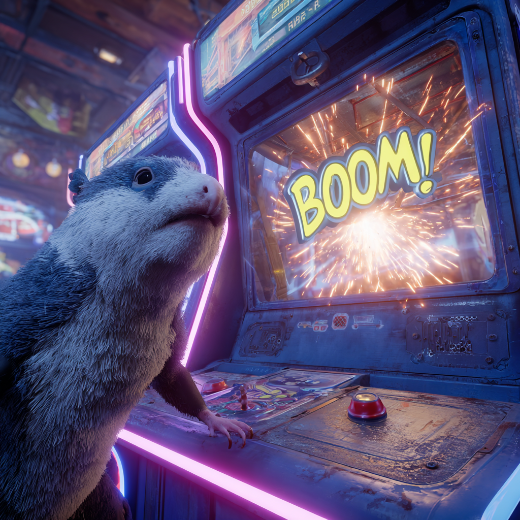 **star-nosed mole 在一家光线昏暗的电玩城内,一台极具动态感和刺激性的运动街机篮球机。机器主体是光滑的深蓝色机柜,配有 vibrant 发光的霓虹粉色和青色LED灯带。屏幕上,一个虚拟篮球入网时,炸开一个卡通风格的爆炸特效,并带有粗体的拟声词"BOOM!"。整体风格融合了**赛博科技和流行漫画风**,屏幕一侧显示着全球排行榜和连击倍数。气氛热烈,带有电影般的灯光和运动模糊,捕捉到了动作的巅峰瞬间。8K画质,超写实,3D渲染,虚幻引擎5** - Image #1 <@1230536543622398016>